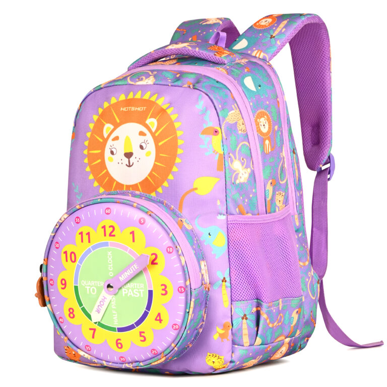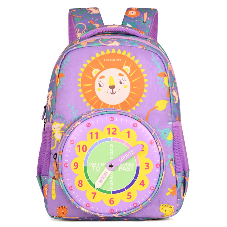 HOTSHOT CLOCK_1813|school bag for boys|bag for kids|16 INCH|backpack for girls |water resistant|for boys & girls|24L school bags – Purple
