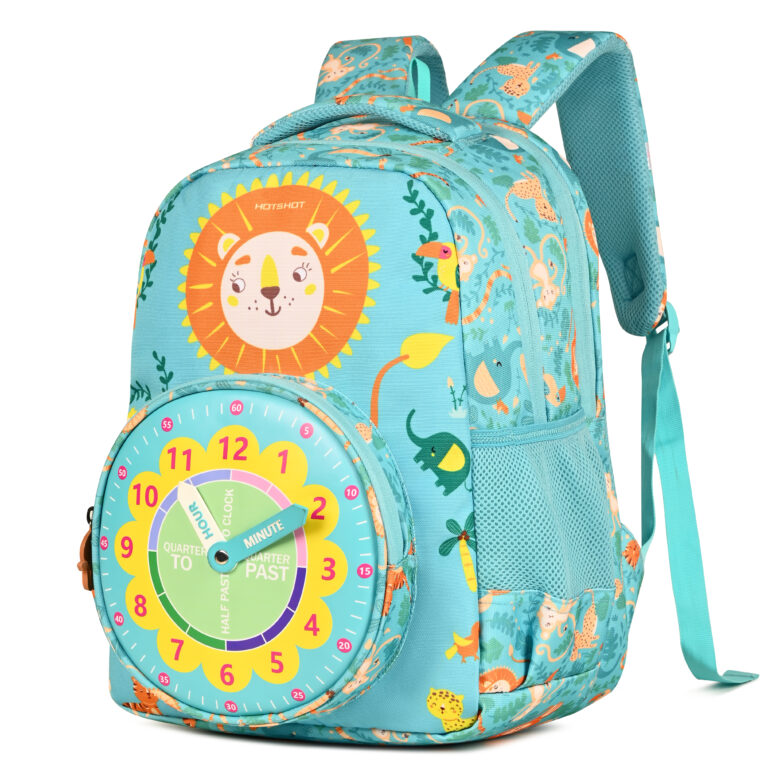 HOTSHOT CLOCK_1813|school bag for boys|bag for kids|16 INCH|backpack for girls |water resistant|for boys & girls|24L school bags – Green
