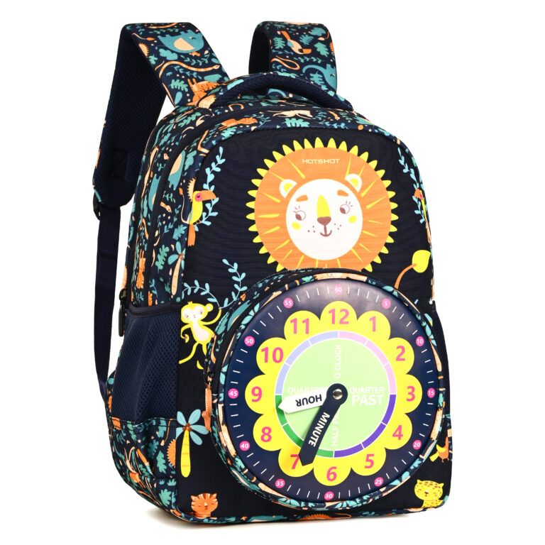 HOTSHOT CLOCK_1813|school bag for boys|bag for kids|16 INCH|backpack for girls |water resistant|for boys & girls|24L school bags – Navy blue