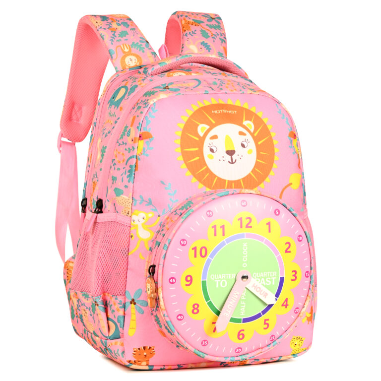 HOTSHOT CLOCK_1813|school bag for boys|bag for kids|16 INCH|backpack for girls |water resistant|for boys & girls|24L school bags – Pink