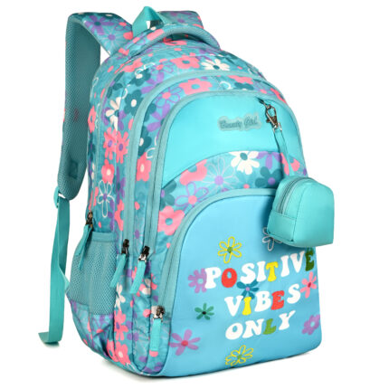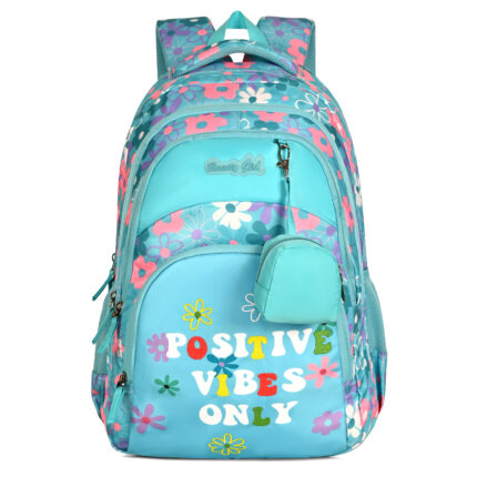 BEAUTY GIRLS BY HOTSHOT POSITIVE VIBES_1671|school bag for girls|kids bag for girls|college bag|with joy pouch|19 inch|backpack for girls |water resistant| 35L school bag – Green
