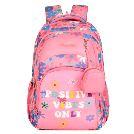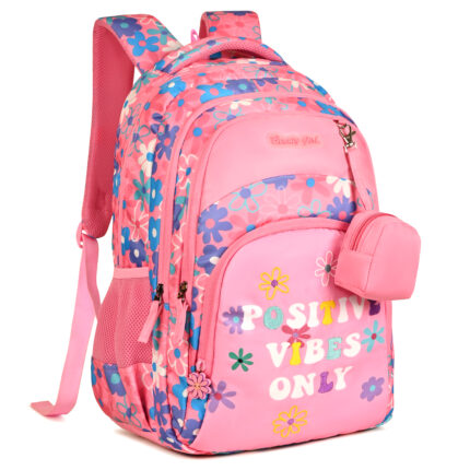 BEAUTY GIRLS BY HOTSHOT POSITIVE VIBES_1671|school bag for girls|kids bag for girls|college bag|with joy pouch|19 inch|backpack for girls |water resistant| 35L school bag – Pink