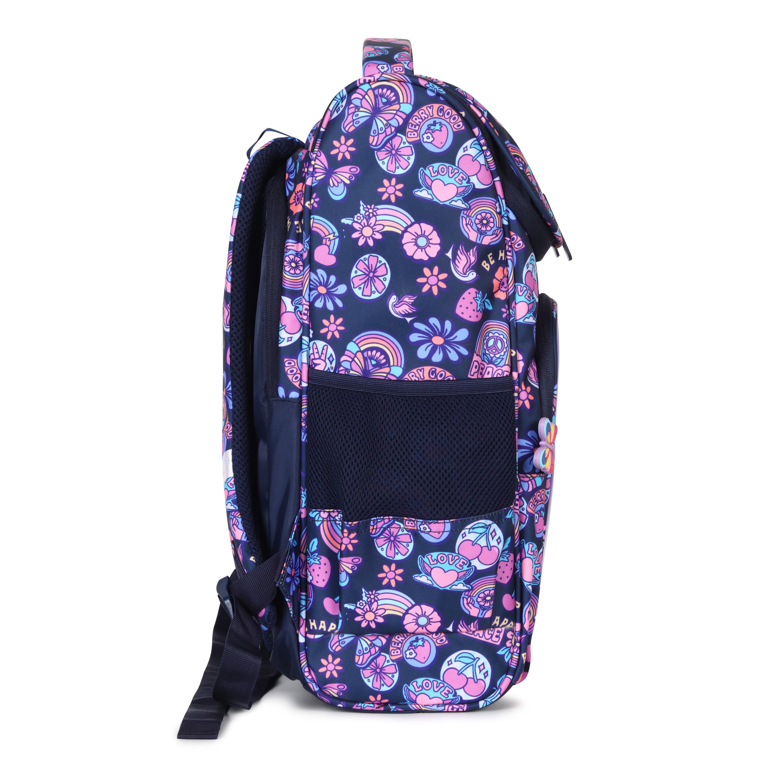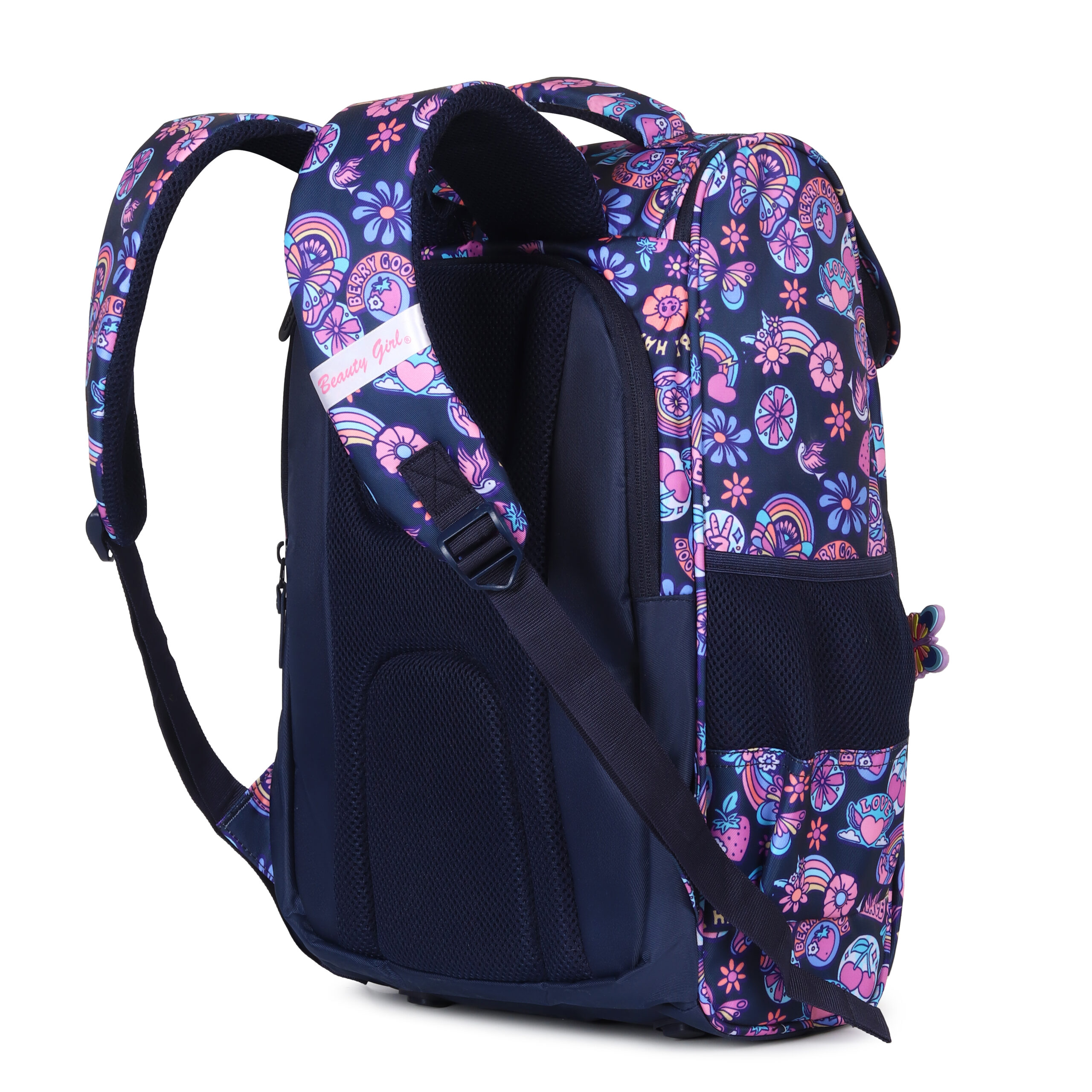 The PEACE school backpack is a vibrant and stylish choice for young girls who love colorful and positive designs. Featuring a dark blue and purple base with a 3D sheet on the front, this backpack is adorned with cheerful butterflies and rainbows. The “Beauty Girl” logo, along with uplifting words like “Peace,” “Love,” “Berry Good,” and “Be Happy,” adds a fun and motivational touch, making it perfect for school and everyday use.