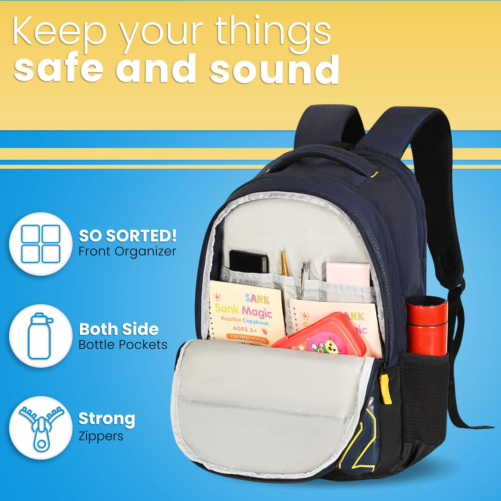 HOTSHOT BAG GAMER_1462|SCHOOL BAG|TUTUION|LARGE SIZE|WATER RESISTANT BAG|19 INCH|FOR BOYS & GIRLS|35 LITERS BACKPACK – Navy blue