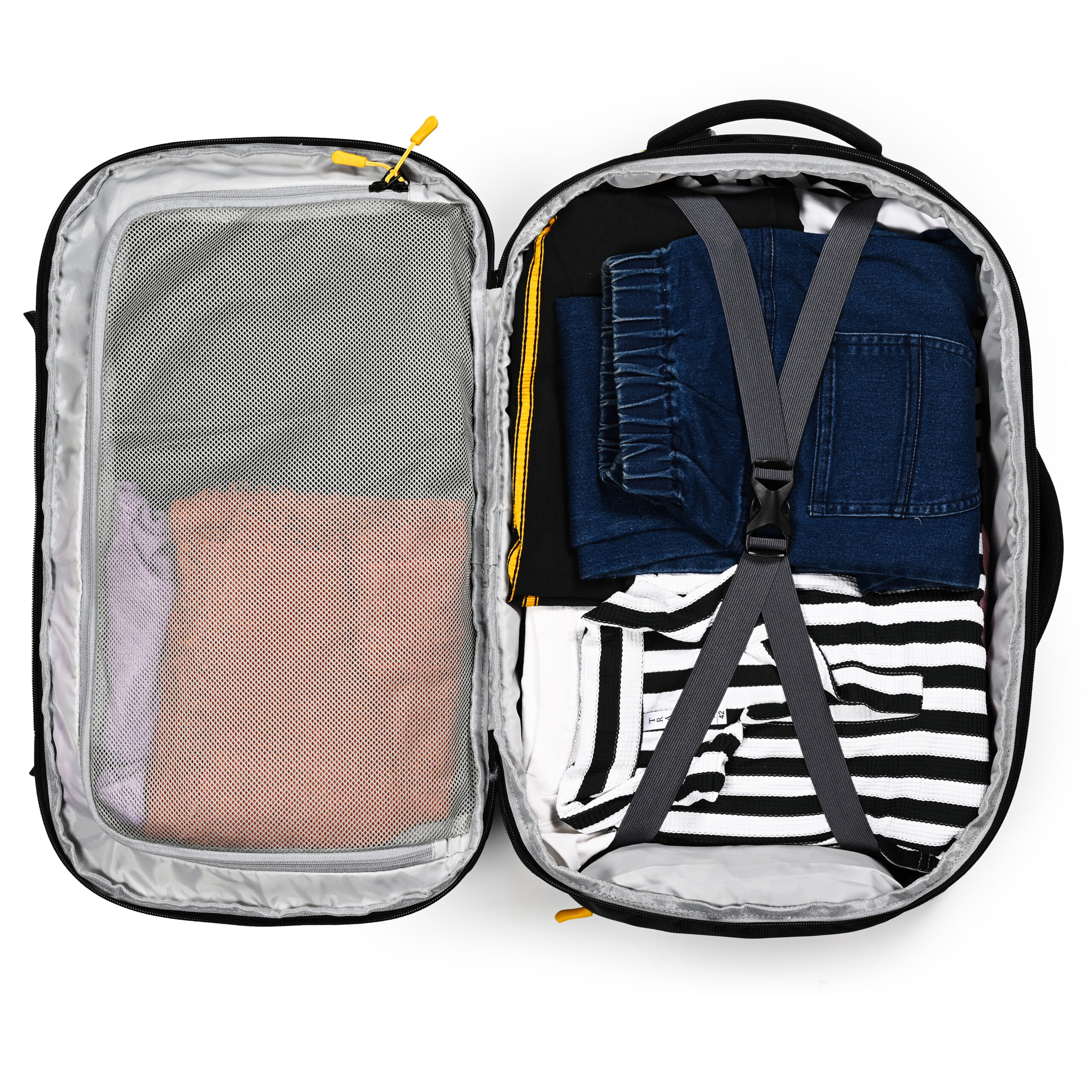 - Three Smart Compartments Features three well-organized compartments, including a dedicated padded laptop compartment for safe device storage and a suitcase-style compartment that opens wide for easy packing and access.