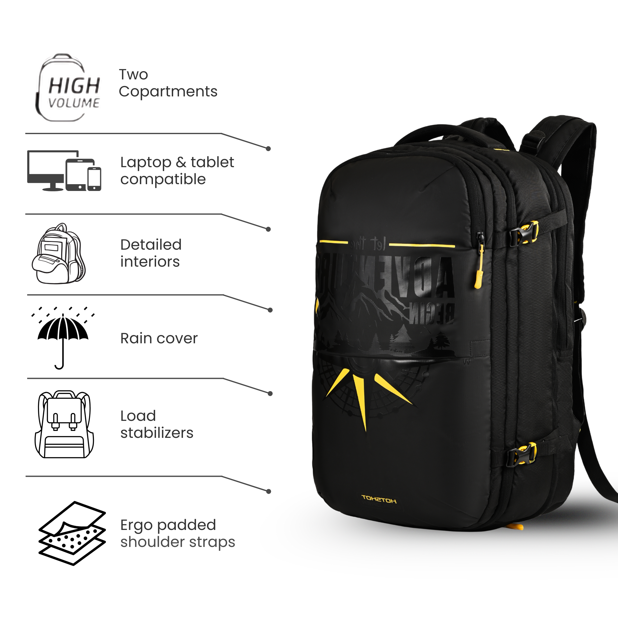 Designed for those who pack more and travel smarter, this premium backpack combines high capacity, smart organization, and all-day comfort. With a spacious 60-liter capacity, it is ideal for travel, college, outdoor adventures, and extended daily use.The backpack features three thoughtfully designed compartments, including a padded laptop compartment to keep your device secure and a suitcase-style main compartment that opens wide for easy packing and access. The expandable design provides extra space whenever needed, making it perfect for longer trips or carrying additional essentials.Built for comfort and stability, the bag comes with an adjustable chest strap and side compression straps that help balance the load and reduce strain on your shoulders. Dual carry handles offer convenient hand-carry options, while the built-in rain cover ensures your belongings stay protected in unexpected weather conditions.Crafted with durable materials and a bold, modern design, this backpack is made to handle heavy use while maintaining its shape and style. Whether you’re commuting, traveling, or heading out on your next adventure, this bag delivers the perfect balance of capacity, comfort, and durability.