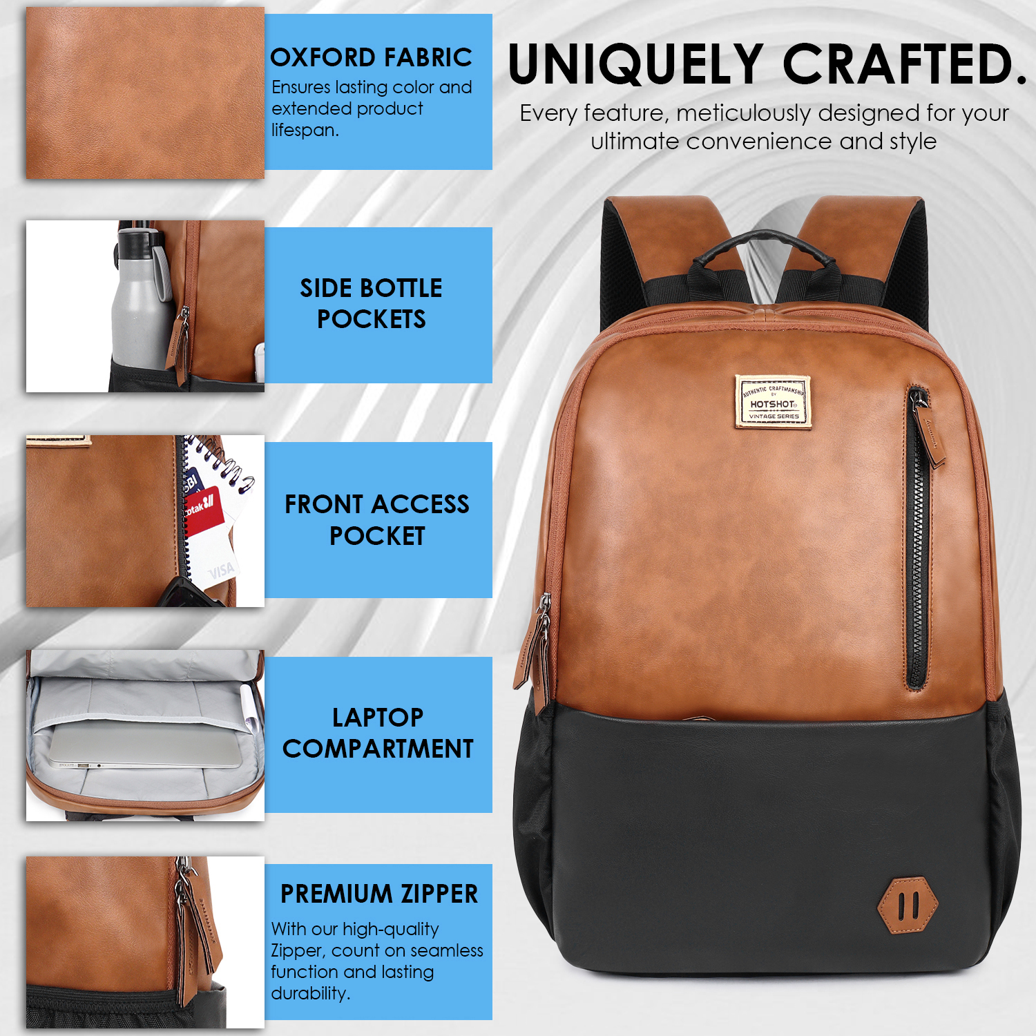 - Modern Aesthetics:* With its minimalist design and sleek finish, the Hotshot Bags Faux Leather Laptop Backpack is perfect for those who want to make a style statement. It’s available in a range of trendy colors to match your personal style.