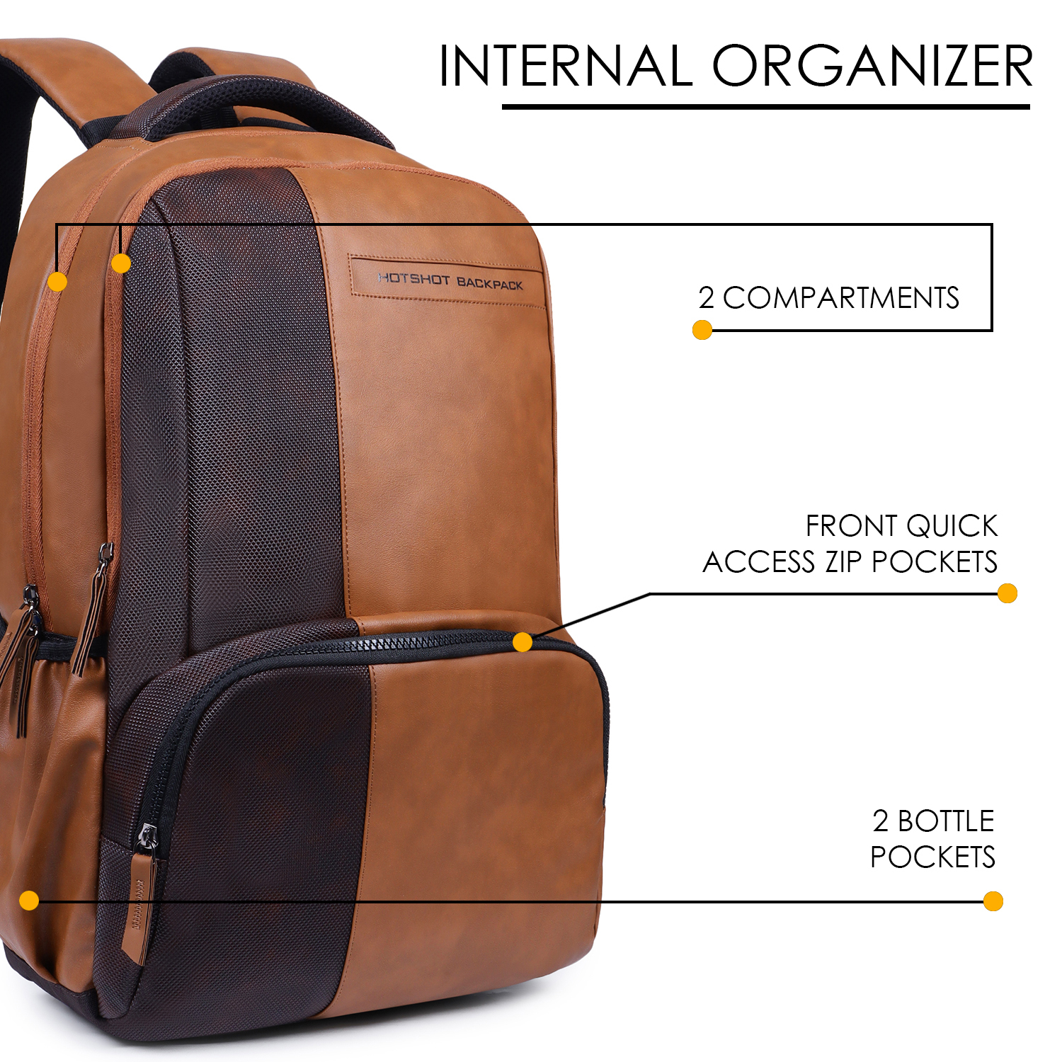 HOT SHOT BAGS VINTAGE SERIES 1387 28L FAUX LEATHER WATER RESISTANT ANTI THEFT LAPTOP BACKPACK | OFFICE BACKPACK | COLLEGE BACKPACK – Tan