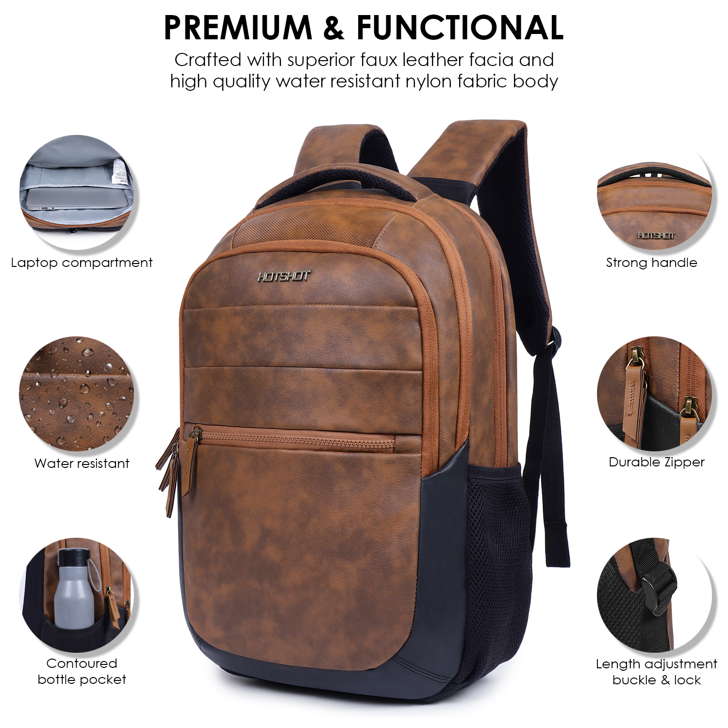 HOTSHOT BAGS VINTAGE SERIES|FAUX LEATHER| LAPTOP BACKPACK|15.6 INCH|OFFICE BAG|COLLEGE BACKPACK |TUTION BAG|SCHOOL BAG |18 INCH|BOYS & GIRLS|MEN & WOMEN |30 LITER LAPTOP BACKPACK