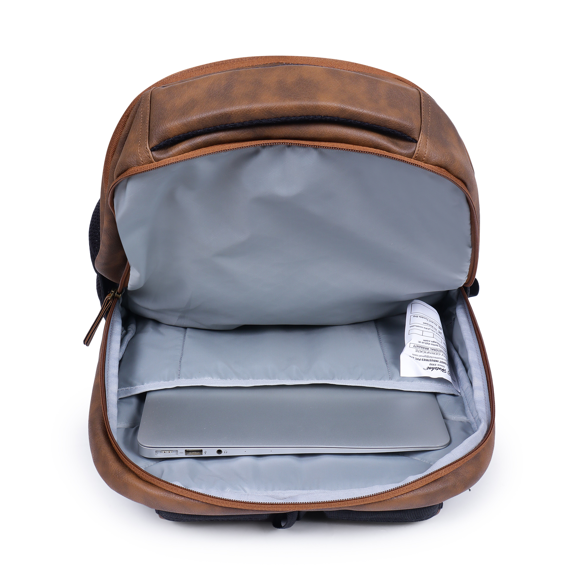 This stylish faux leather laptop backpack combines functionality with a sleek design, perfect for professionals and students alike. Crafted from high-quality leather, this backpack offers durability and a sophisticated look. The spacious compartments and pockets ensure that all your essentials are organized and easily accessible.