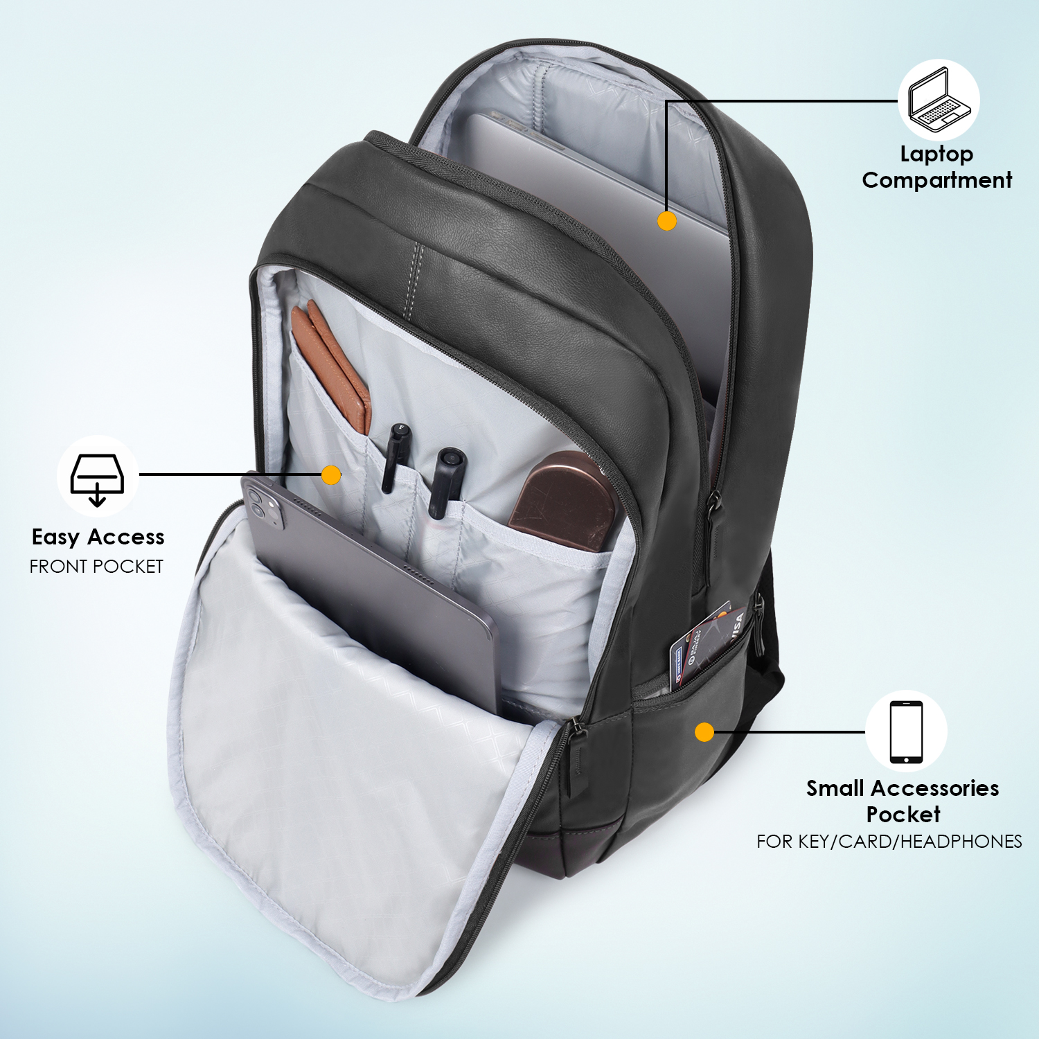 - Premium Faux Leather:* Crafted from high-quality faux leather, this backpack offers a sleek and sophisticated look without compromising on durability. It’s designed to withstand the daily wear and tear of student life and office commutes.