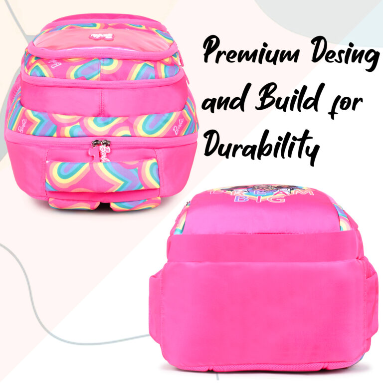 Let your childβs dreams take flight with the HOTSHOT Premium Barbie βDream Bigβ Backpack! Bursting with color, positivity, and character, this backpack showcases three diverse Barbie icons under the empowering message “DREAM BIG”. The vibrant rainbow-heart patterns, holographic Barbie flap, and bold pink body create a dazzling look that makes school fun and exciting.Crafted with a focus on comfort, space, and style, this backpack is ideal for school, travel, and daily use. With wide compartments, durable zippers, and soft padded straps, itβs the perfect blend of fashion and functionality for young Barbie fans.