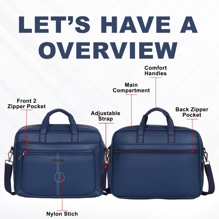 - Compartments & Pockets: 2 Main compartments for maximum storage, 3 Multi-utility pockets (Front & Back zipper pockets),Dedicated pen pocket, phone pocket, and diary pocket,Padded laptop compartment for secure device storage