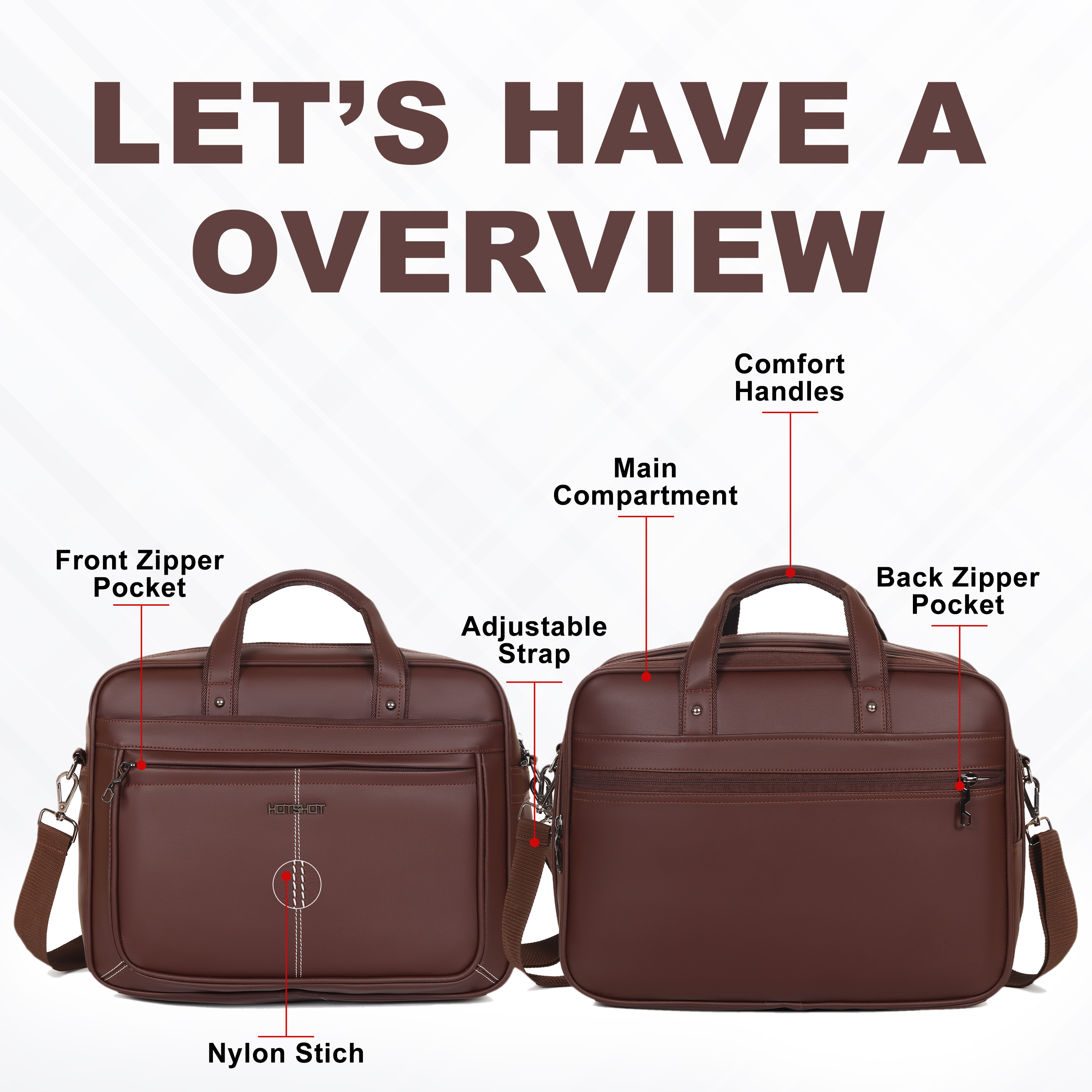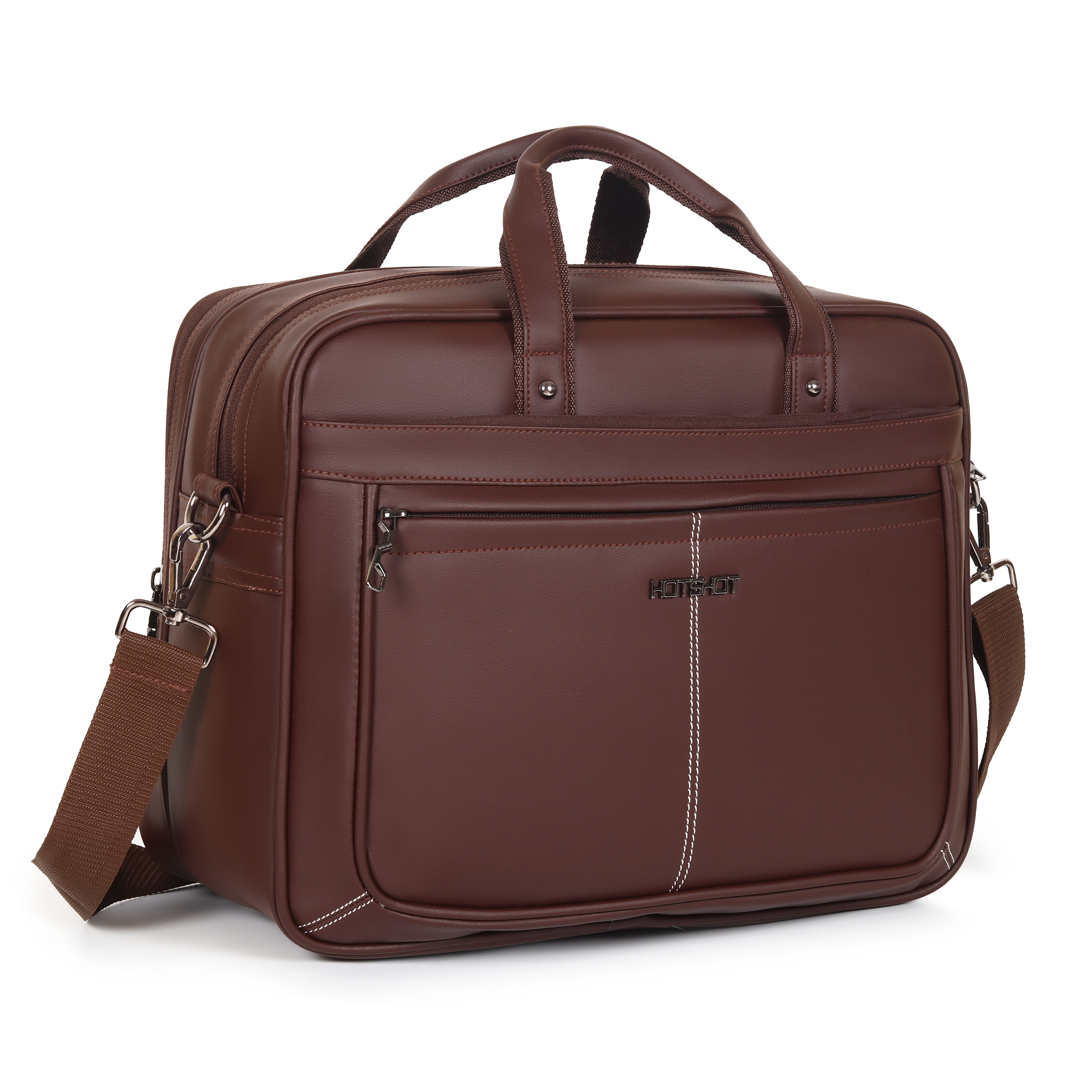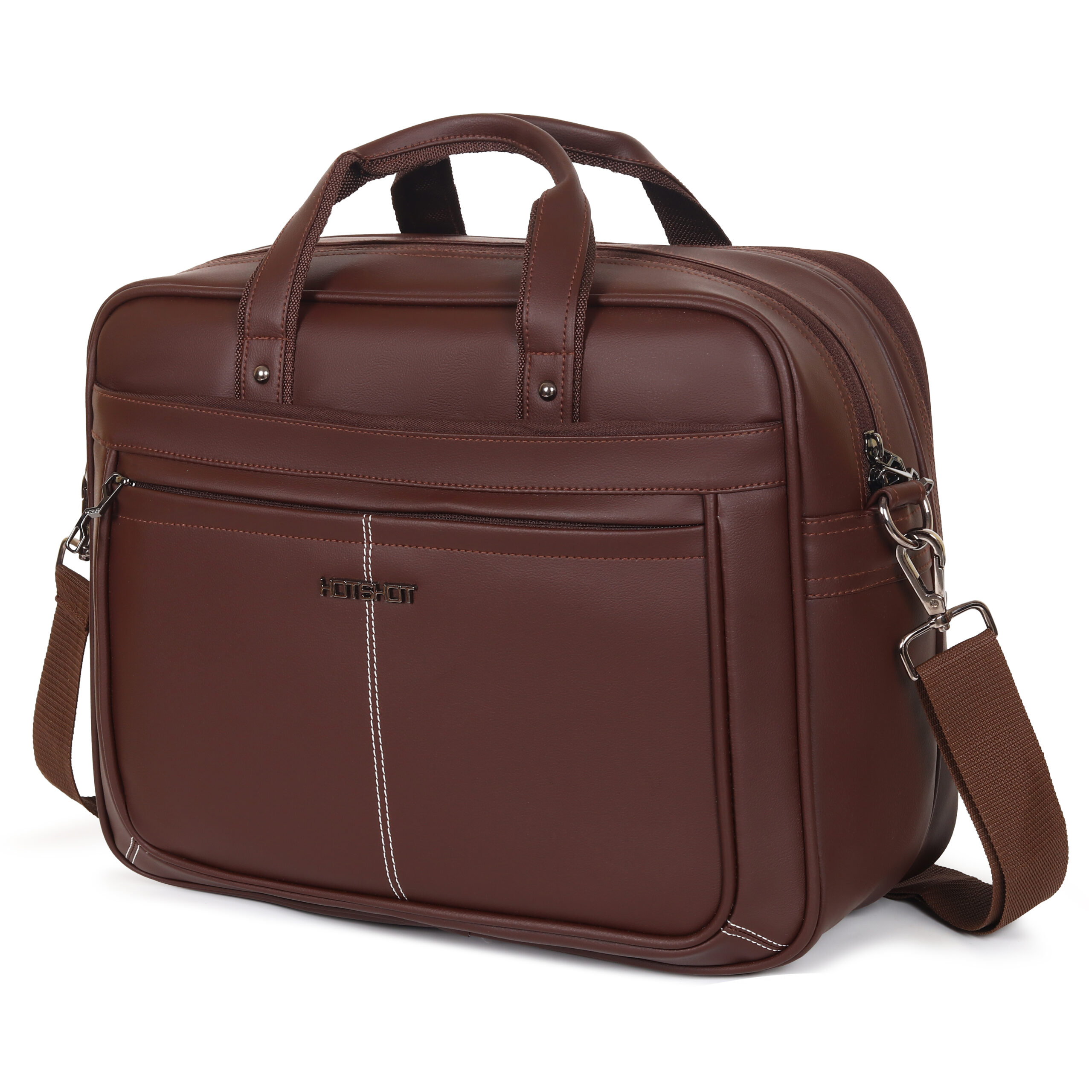 Carry your essentials in style with the HOTSHOT Premium Leather File Bag. Designed for professionals, this bag combines sleek looks with maximum functionality. Made from high-quality leather, it comes in three elegant shades—Brown, Black, and Blue—making it a perfect companion for office, college, or travel. With a 20-liter capacity, dual compartments, and multiple organizer pockets, it ensures all your documents, gadgets, and accessories stay neatly arranged. The padded laptop compartment protects your device, while the detachable and adjustable 130 cm shoulder strap and sturdy comfort handles make it convenient to carry. Heavy-duty locks, water resistance, and premium stitching add durability and reliability to this professional file bag.