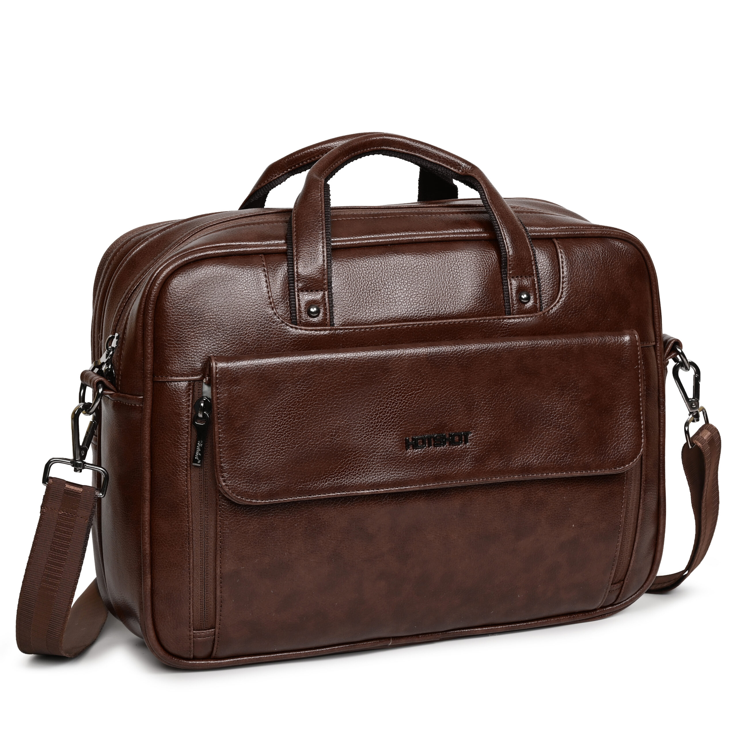 Upgrade your work style with the HOTSHOT Leather Messenger Laptop Bag, crafted for professionals who value both elegance and functionality. Made from premium leather, this sleek bag combines durability with timeless design. It features dual compartments and multiple organizer pockets for your laptop, diary, phone, and pens — keeping your essentials neatly arranged. With two sturdy handles, a detachable 129 cm adjustable shoulder strap, and a trolley sleeve for easy travel, this bag is built for comfort and convenience. Perfect for business, office, and travel use.Available in 3 elegant colors – Black, Brown, and Tan.