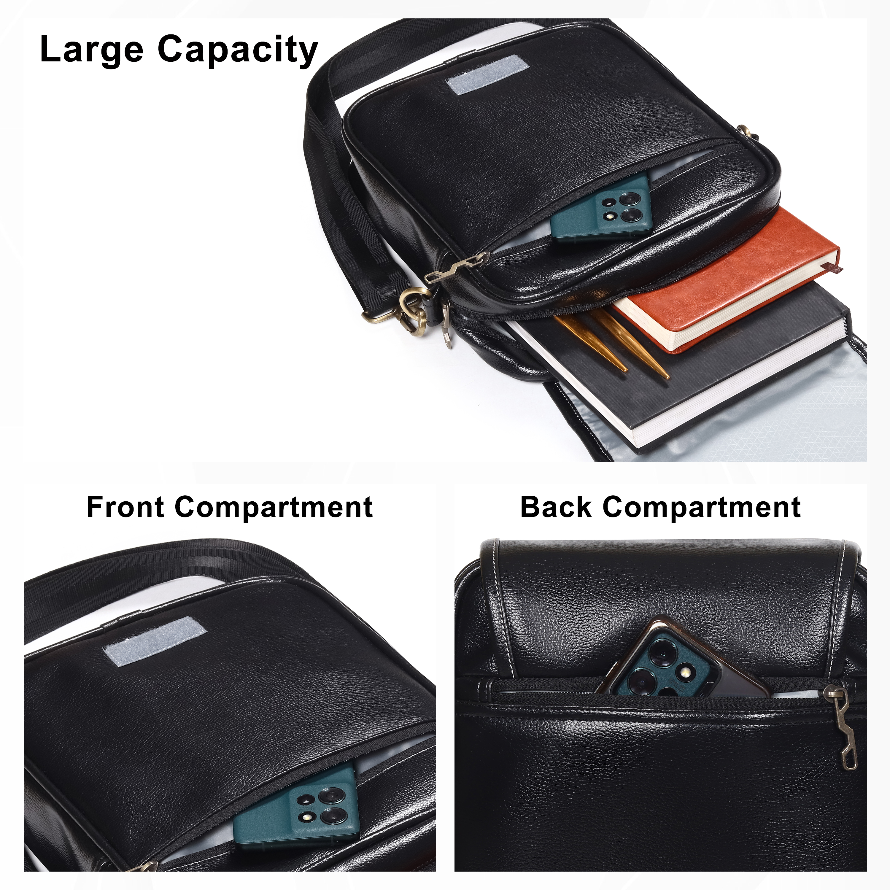 HOTSHOT TRIPSTER_2007|FAUX LEATHER SLING BAG|SIDE BAG|TRAVEL BAG|SHOULDER BAG|PASSPORT BAG|CROSS BODY BAG|WATER RESISTANT|7 LITER SLING BAG FOR MEN & WOMEN – Black
